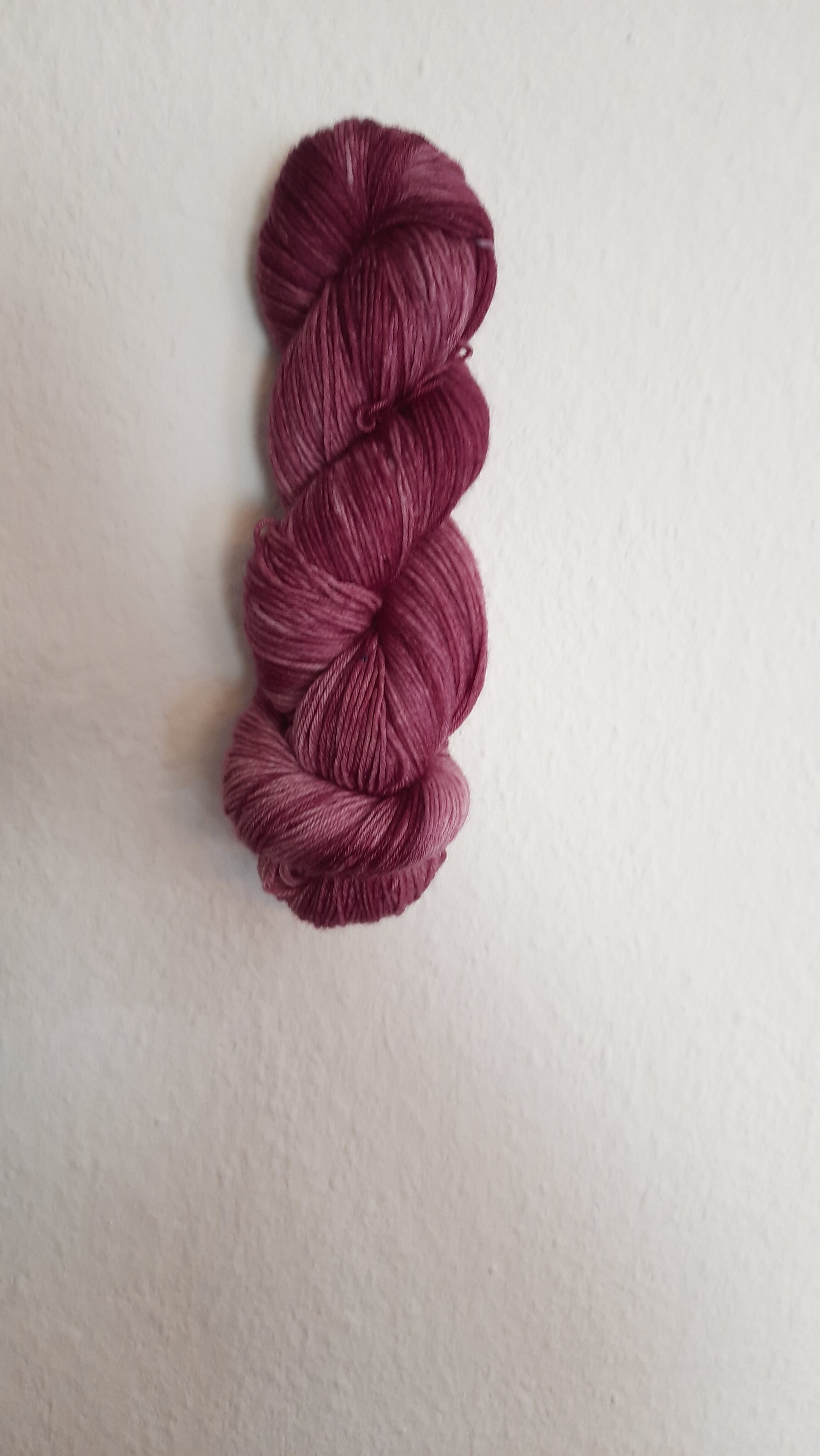 Das Garn ist mit Liebe handgefärbt und jeder Strang ist ein Unikat. Um "Übergänge" zu minimieren, sollten die Stränge gleichzeitig abwechselnd verstrickt werden.