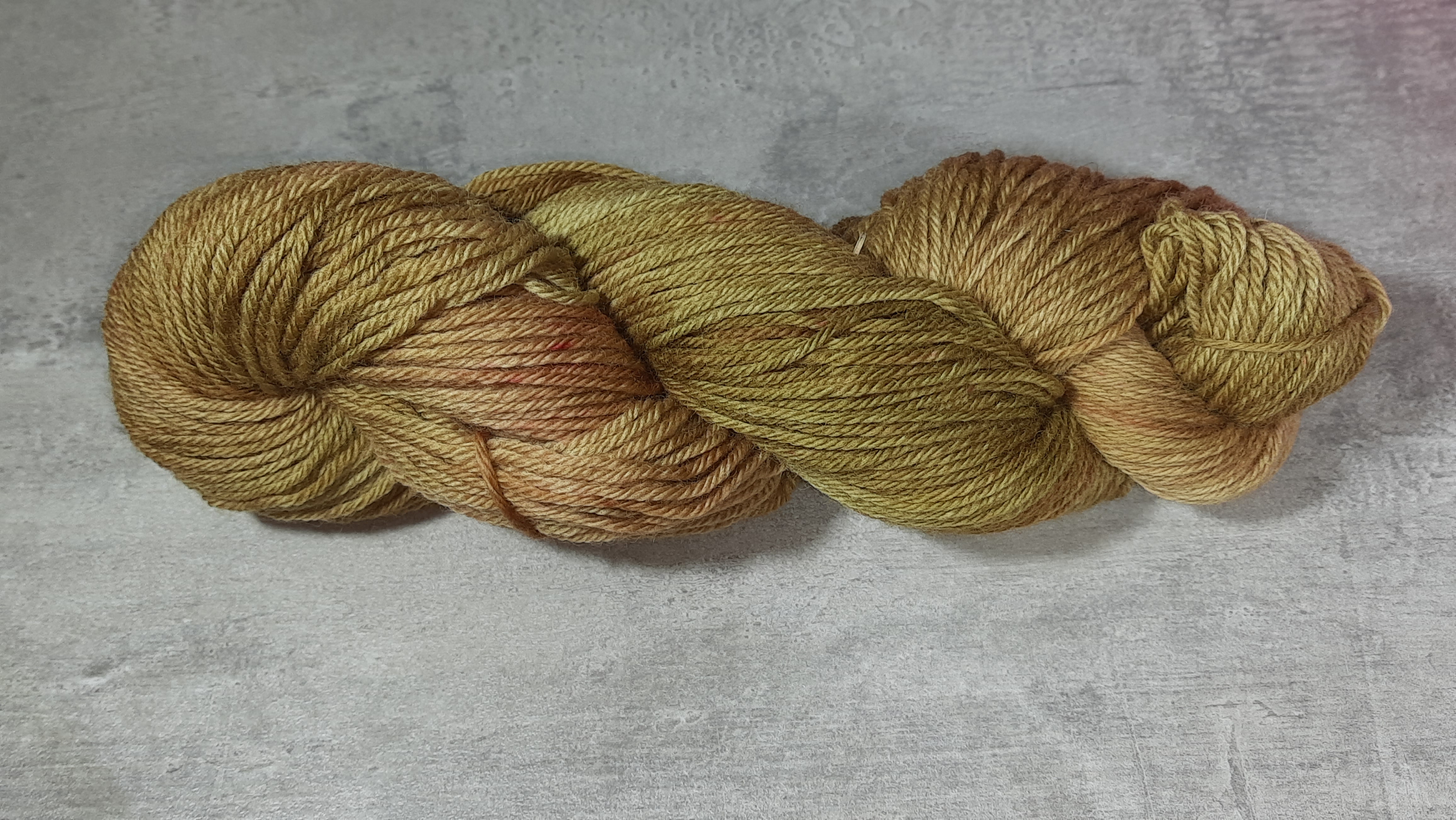 Dieses Garn weist zu seinem Goldbraun noch leichte aufgepoppte rötliche Töne auf.