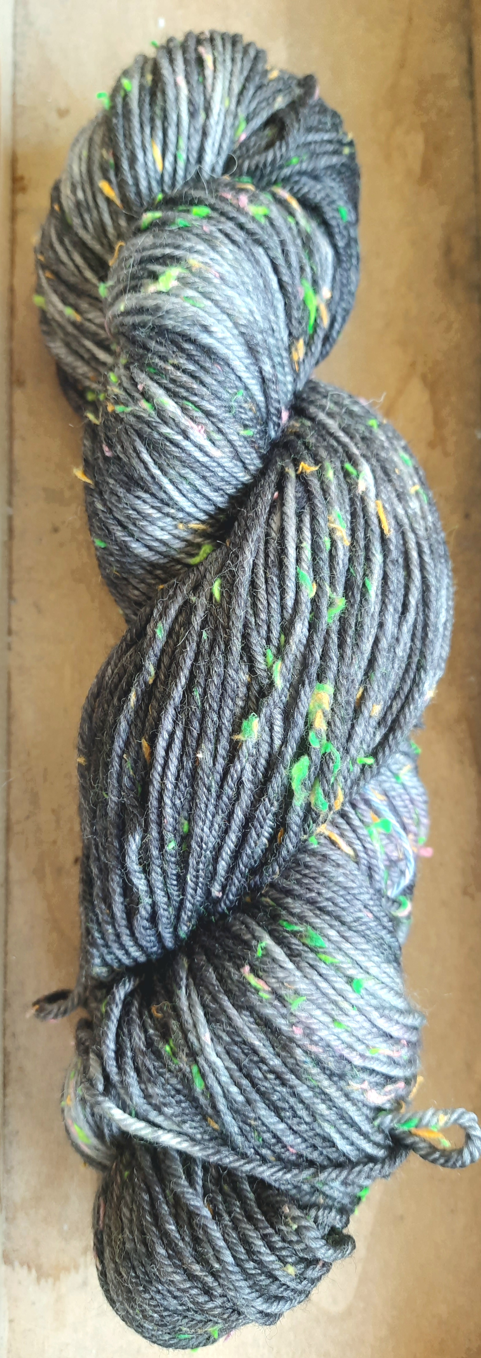 85% Schurwolle (Merino superwash)/15% Donegal Nep