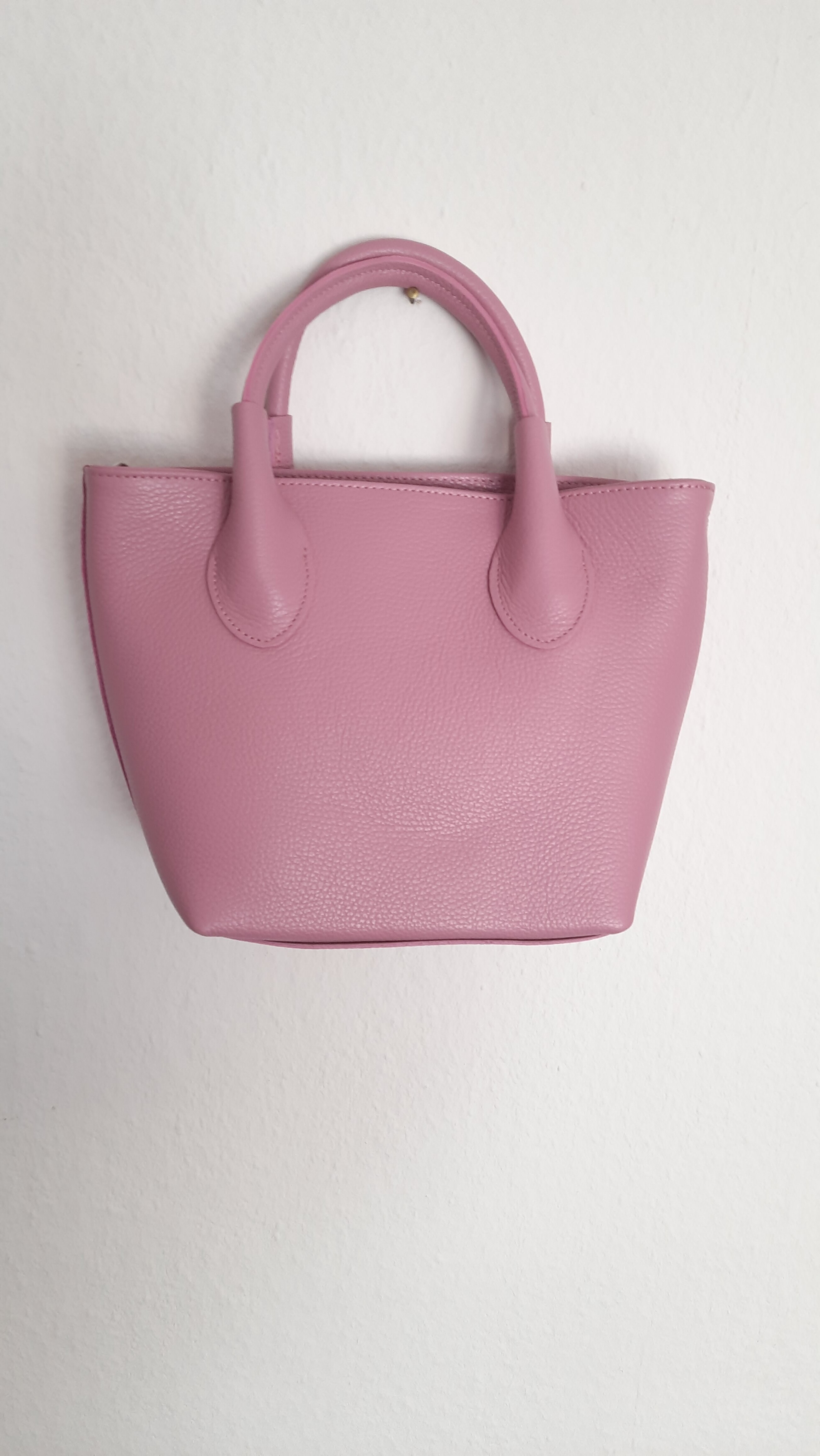 Die Tasche ist aus Leder gefertigt und hat kleine Metallfüsschen an der Unterseite, so dass man sie entspannt auch mal abstellen kann. Man kann sie elegant an den Henkeln tragen oder cross over mit dem mitgelieferten Lederriemen.