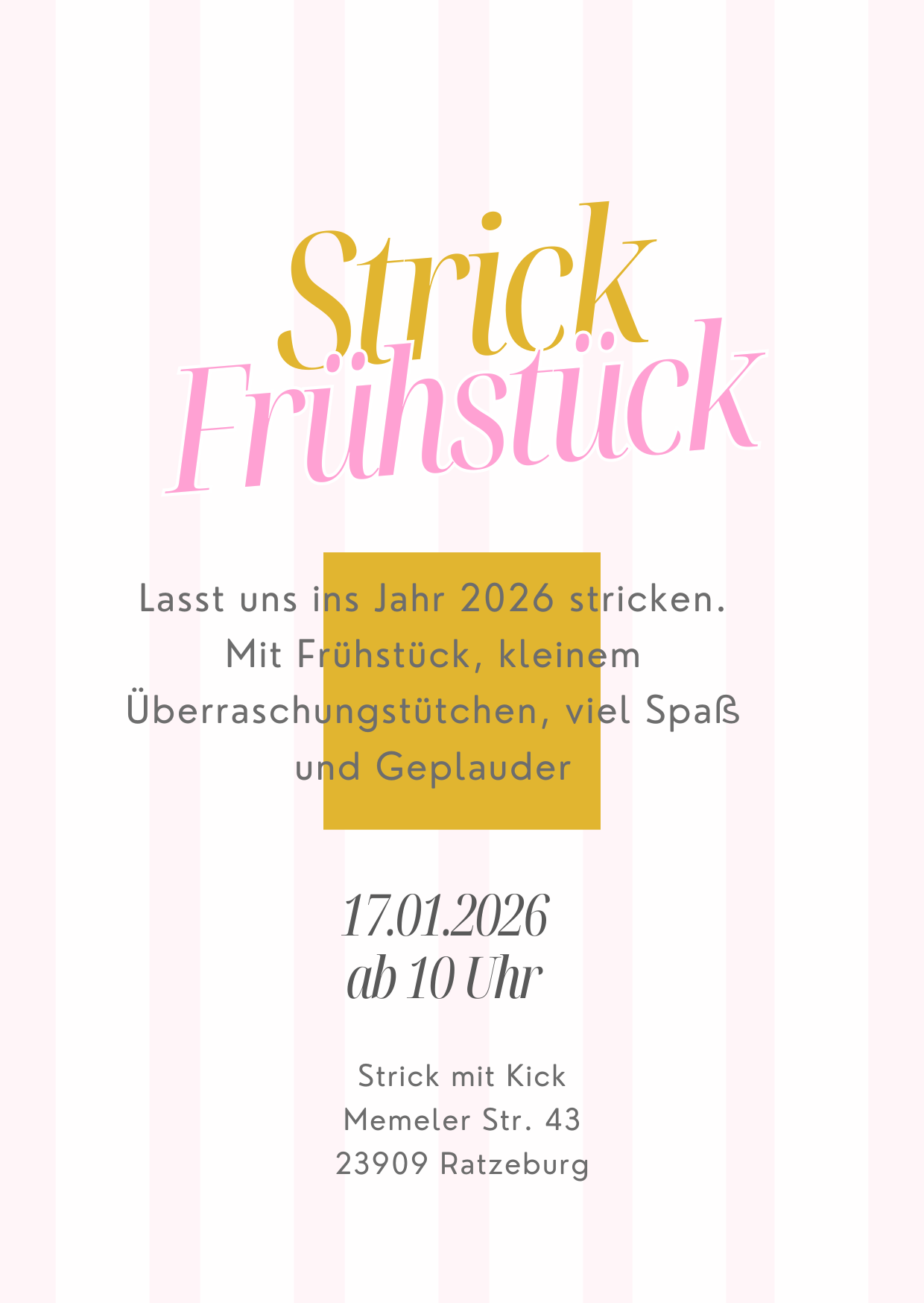Lasst uns das neue Jahr mit einem strickigen Frühstück starten. Zwischen Kaffee, Tee, knusprigen Brötchen, buttrigen Croissants; Konfitüre, Lachs und Rührei wird geplaudert, gestrickt oder neueste Projekte geplant. Und das Beste - all das findet in einem kleinen Wollparadies statt. Und ein kleines Strickset für einen kreativen Strickstart ins Jahr 2026 ist auch dabei.