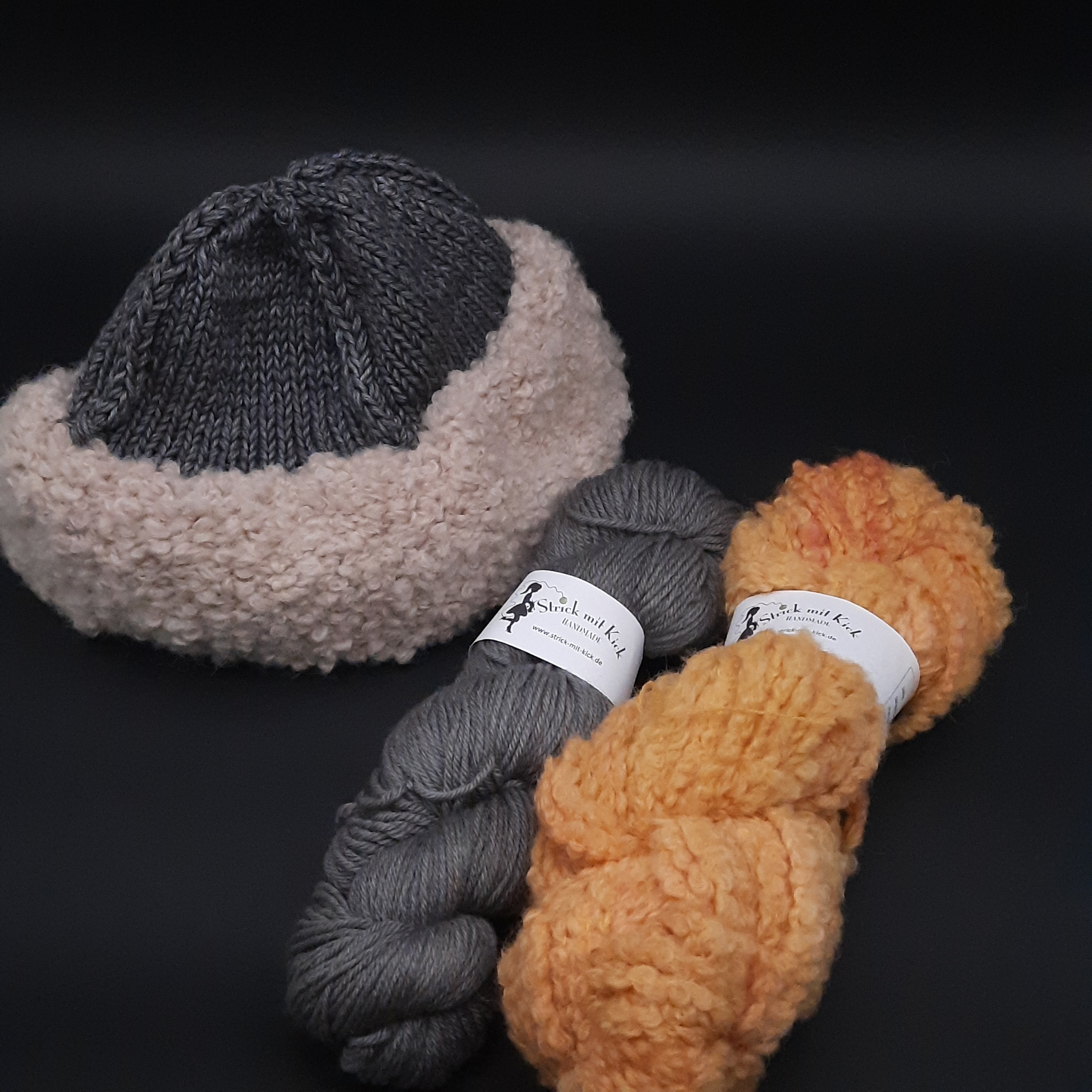 Strickset Beanie No. 6 antrazitorange